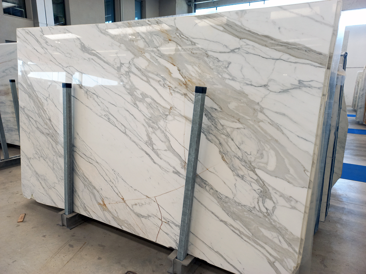 Calacatta Marble is the epitome of luxury and sophistication. Quarried in Italy, it features a luminous white background accented by bold, dramatic veining in shades of gray and gold.