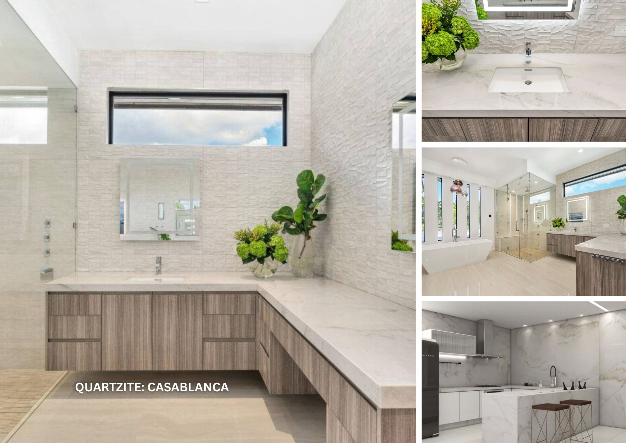 Casablanca has a creamy white background, making it dreamy quartzite. Its curved grey veins stretch across its surface like beams of light. High durability and heavy-duty properties makes this stone good for Countertops, monuments, mosaic, exterior – interior wall and floor applications, fountains, pool and wall capping, stairs, window sills and other design projects. (BATCH 18073)