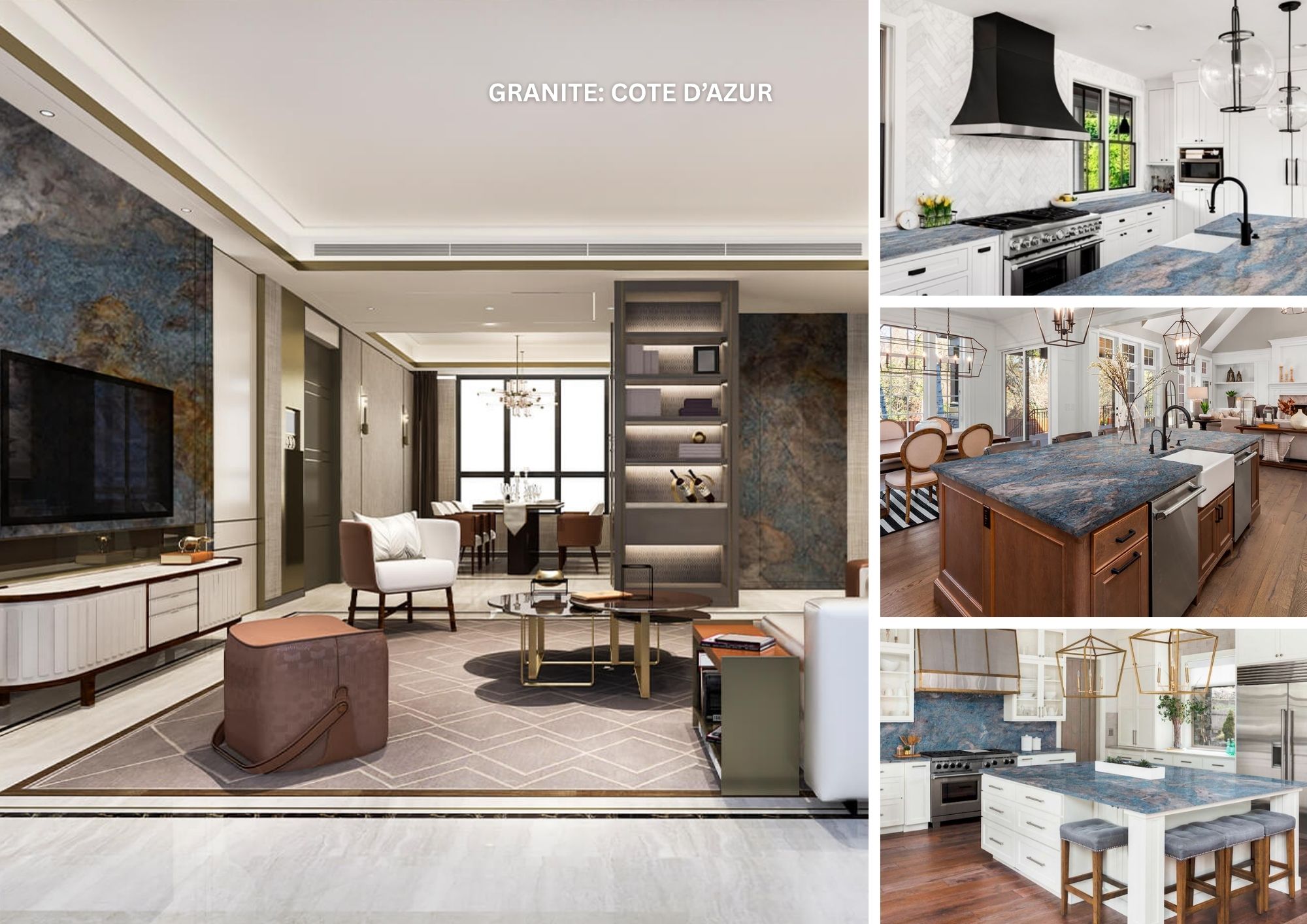 Cote D’Azur is a gorgeous and rare blue quartzite that has an impressive pattern and a captivating natural beauty. This mesmerizing material is one of our finest and is an amazing choice for a luxurious surface that enriches the ambience. It is quarried in Brazil and has many uses as it is a strong impact material and used for interior designs including floors, counter tops, vanity tops, stairs, columns, sinks & tubs. (BATCH 129A)