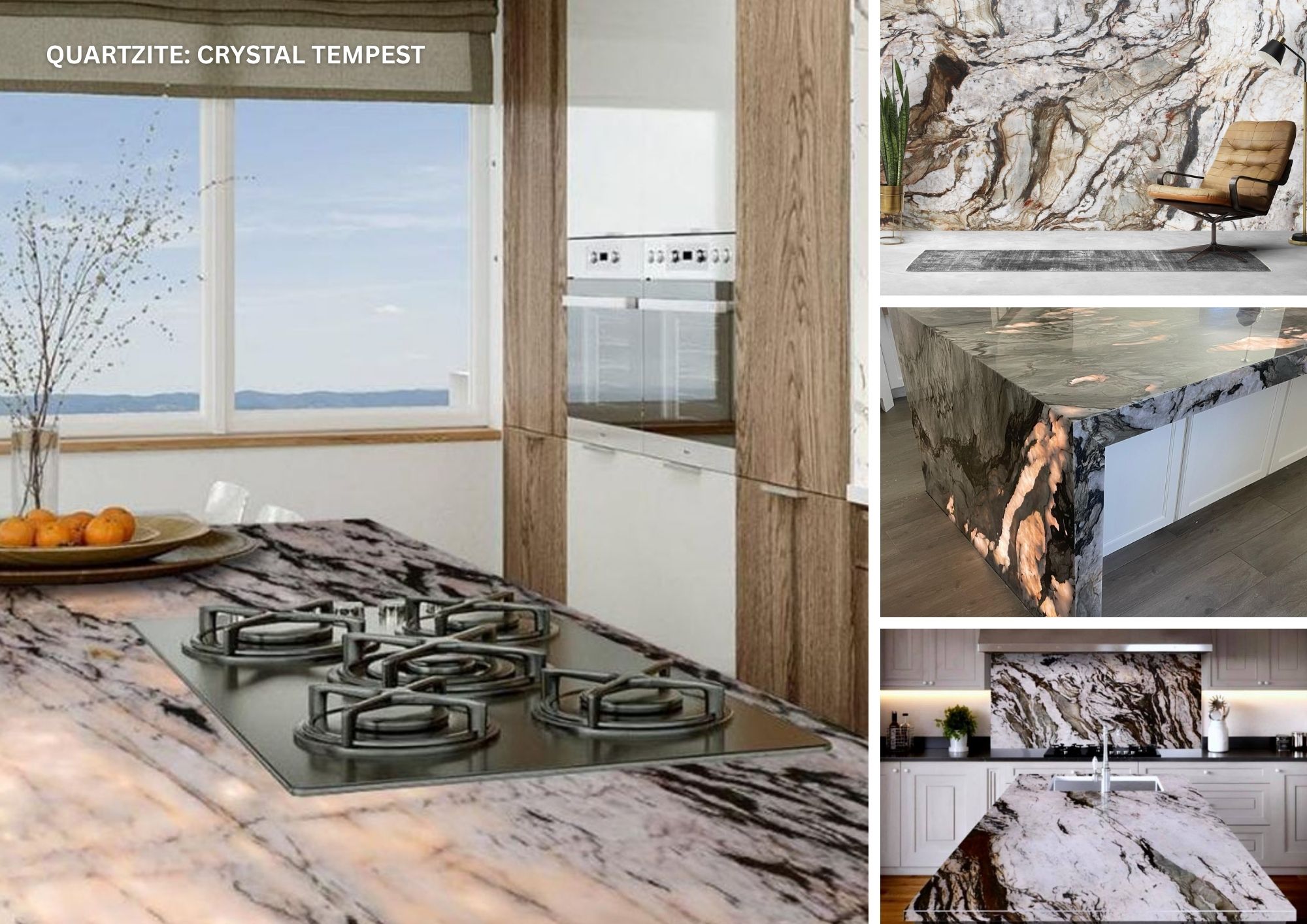 Crystal Tempest quartzite shows a moody and dramatic waves of blue and grey/green, interspersed with creamy white, rage across the face of each slab. Every slabs is unique. It suits both inside and outside applications. (BATCH 4280)