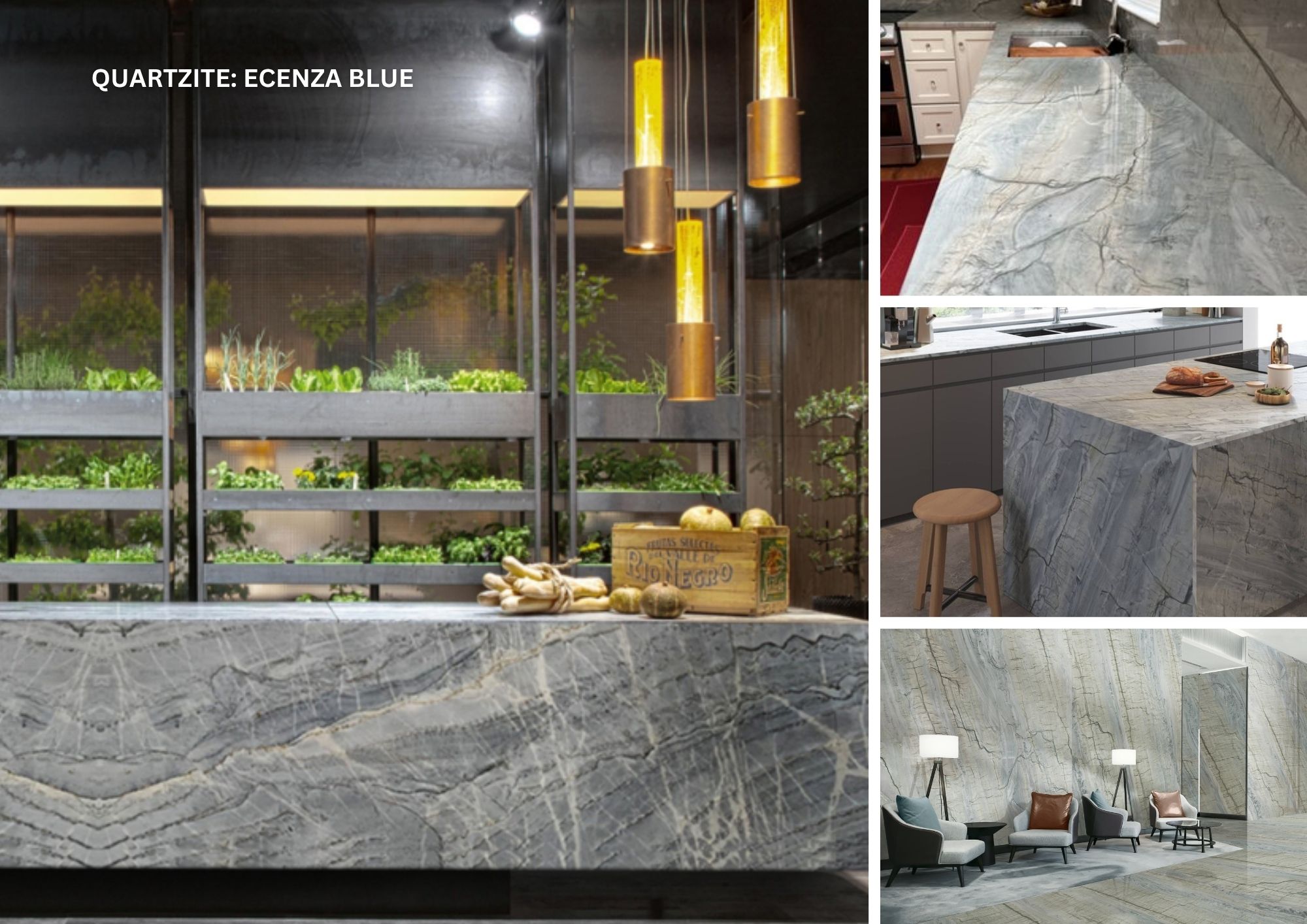 Ecenza Blue quartzite is a unique stone quarried in Brazil that has waves of crystal blue throughout. The crystalline coloration provides a very warm and relaxing feel. (BATCH 4463)
