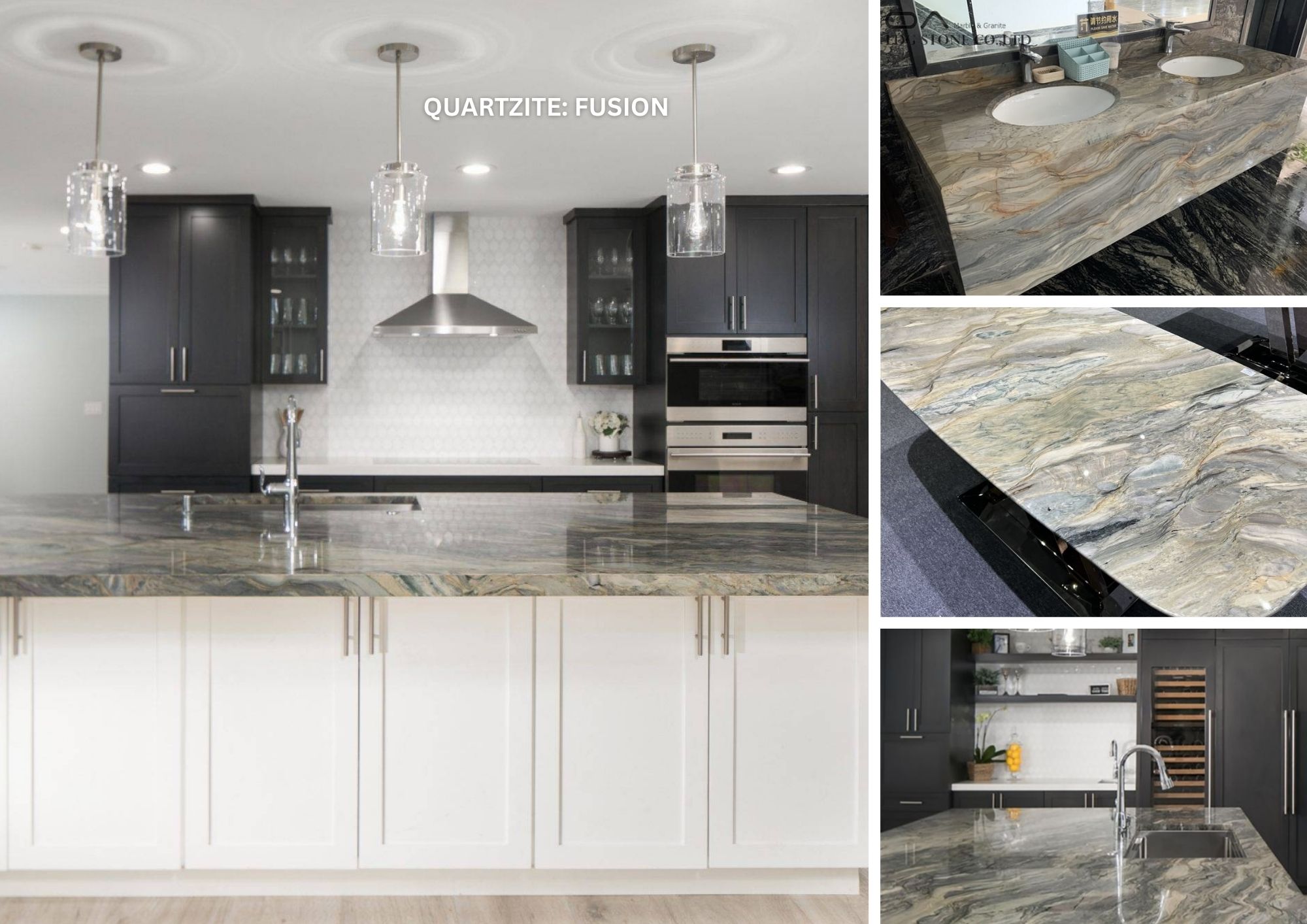 Fusion is a quartzite from Brazil. A unique and colorful quartzite with movement and color in each slab resemble an abstract painting – a piece of art from nature. It is a strong impact material and used for interior designs including floors, counter tops, vanity tops, stairs, columns, sinks & tubs, also can be used in exterior applications. (BATCH 4702)