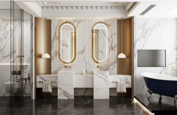 Genesis Statuario Classic features a pristine white background accented by subtle gray veining, reflecting the timeless elegance and refined character of Italian marble.