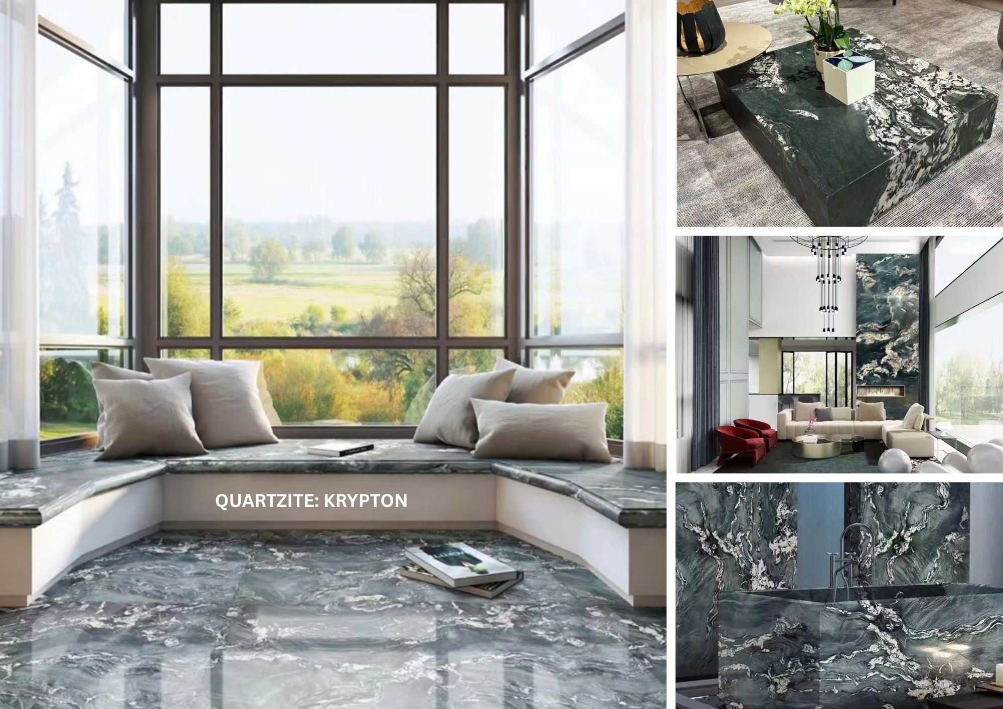 Krypton quartzite is a beautiful silver, grey blue stone slab from Brazil. It is leathered and 2CM. (BATCH 24799)