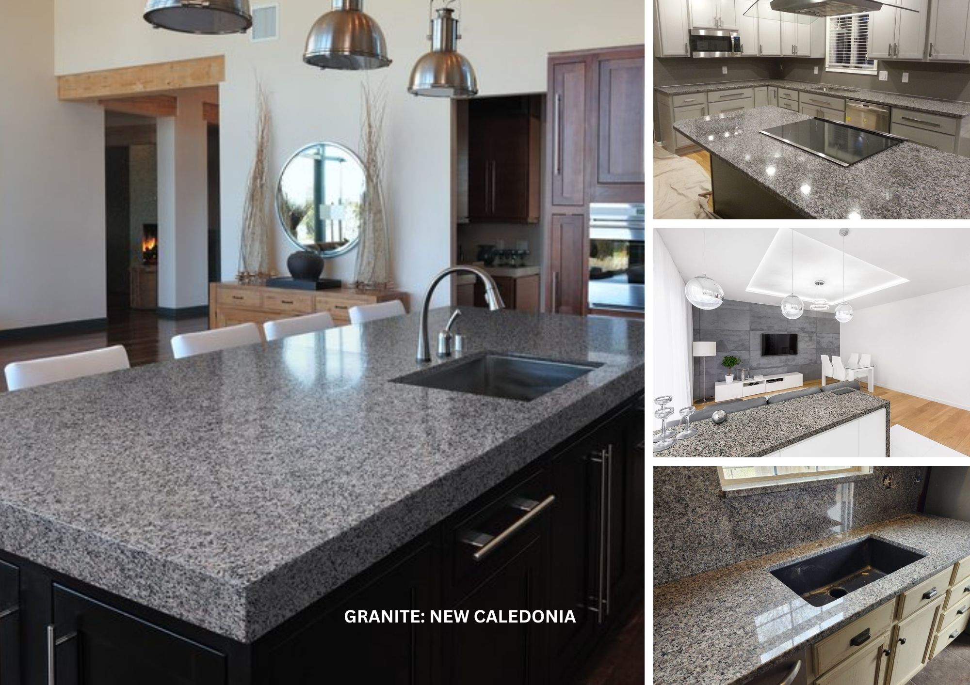 New Caledonia is a popular choice for countertops and other surfaces due to its beauty and durability. It is characterized by its intricate pattern of shades of greys and white, ranging from charcoal to light grey. The stone’s unique grain structure is consistent across different slabs, making it a reliable choice for large projects.