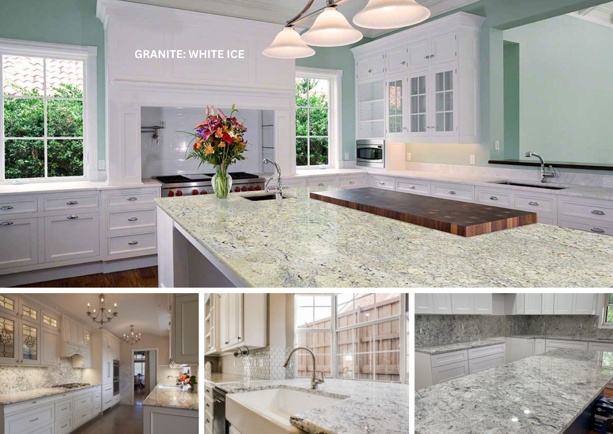 White Ice Granite is a beautiful and elegant natural stone known for its striking combination of soft whites, silvers, and subtle grays, often with hints of beige, black, or blue. The stone’s appearance is marked by delicate, frosty patterns and occasional speckles of darker minerals that give it a textured, almost icy appearance. Its clean, cool tones make White Ice Granite a versatile choice, able to complement a wide range of interior design styles, from contemporary and minimalist to more traditional or rustic themes.