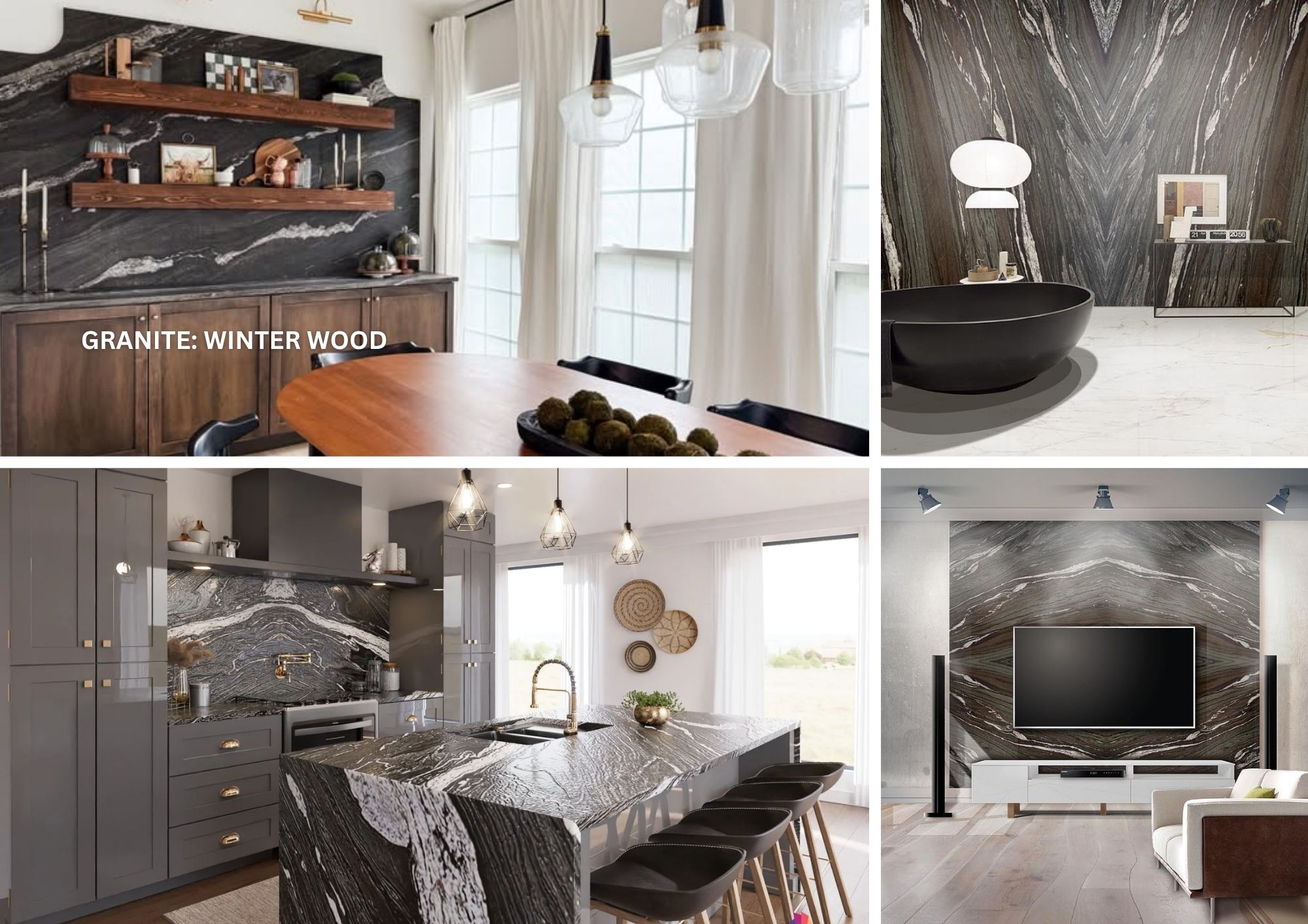 Winter Wood is a Brazilian granite with a unique look. Rich veins of gold, black, chocolate-brown, taupe, contrasted with white. It is good for inside and outside applications. (BATCH 4611) LEATHERED